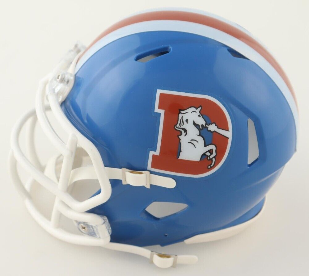 Riddell Denver Broncos throwback mini helmet. Hand-signed by Steve Atwater.