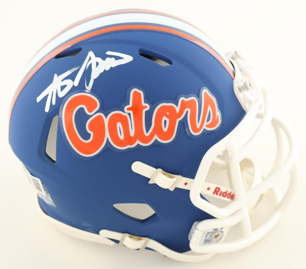 Riddell Florida Gators Blue Speed Mini Helmet. Hand-signed by Steve Spurrier. The autograph includes an official Beckett Authentication Services serially numbered hologram and QR Code card for authenticity purposes. The...