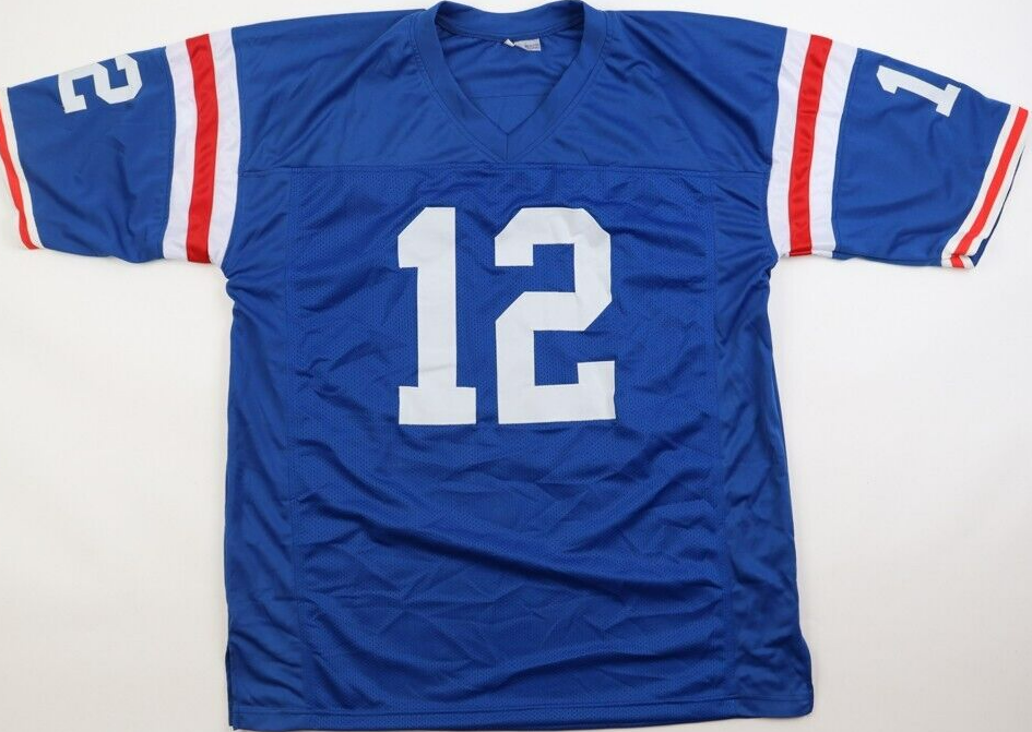 Custom on-field style jersey. Everything is sewn on, size XL. Hand-signed by Terry Bradshaw (HOF).