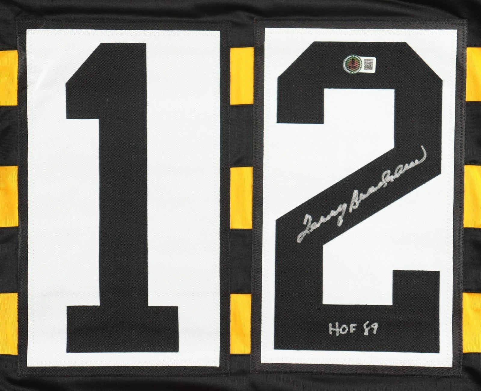 Custom on-field Bumble Bee Throwback style jersey. Everything is sewn on, size XL. Hand-signed by Terry Bradshaw (HOF).