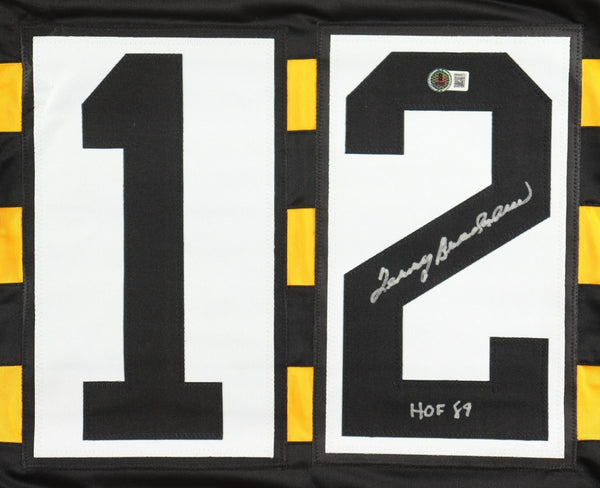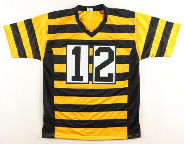 Custom on-field Bumble Bee Throwback style jersey. Everything is sewn on, size XL. Hand-signed by Terry Bradshaw (HOF). The autograph includes an official Beckett Authentication Services serially numbered scannable hologram...