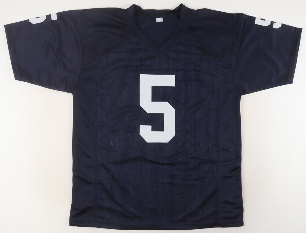 Custom on-field style jersey. Everything is sewn on, size XL. Has been hand-signed and inscribed by Terry Hanratty.