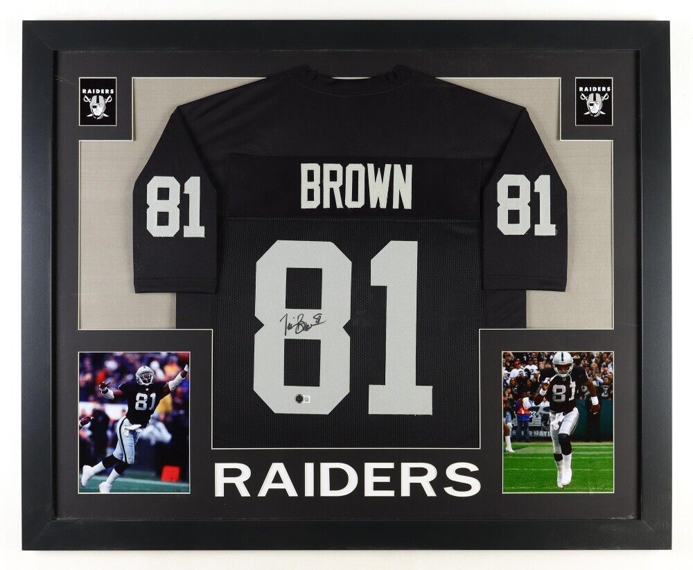 Tim Brown Signed Oakland Raiders 35"x 43" Framed Jersey (Beckett) All Pro W.R.