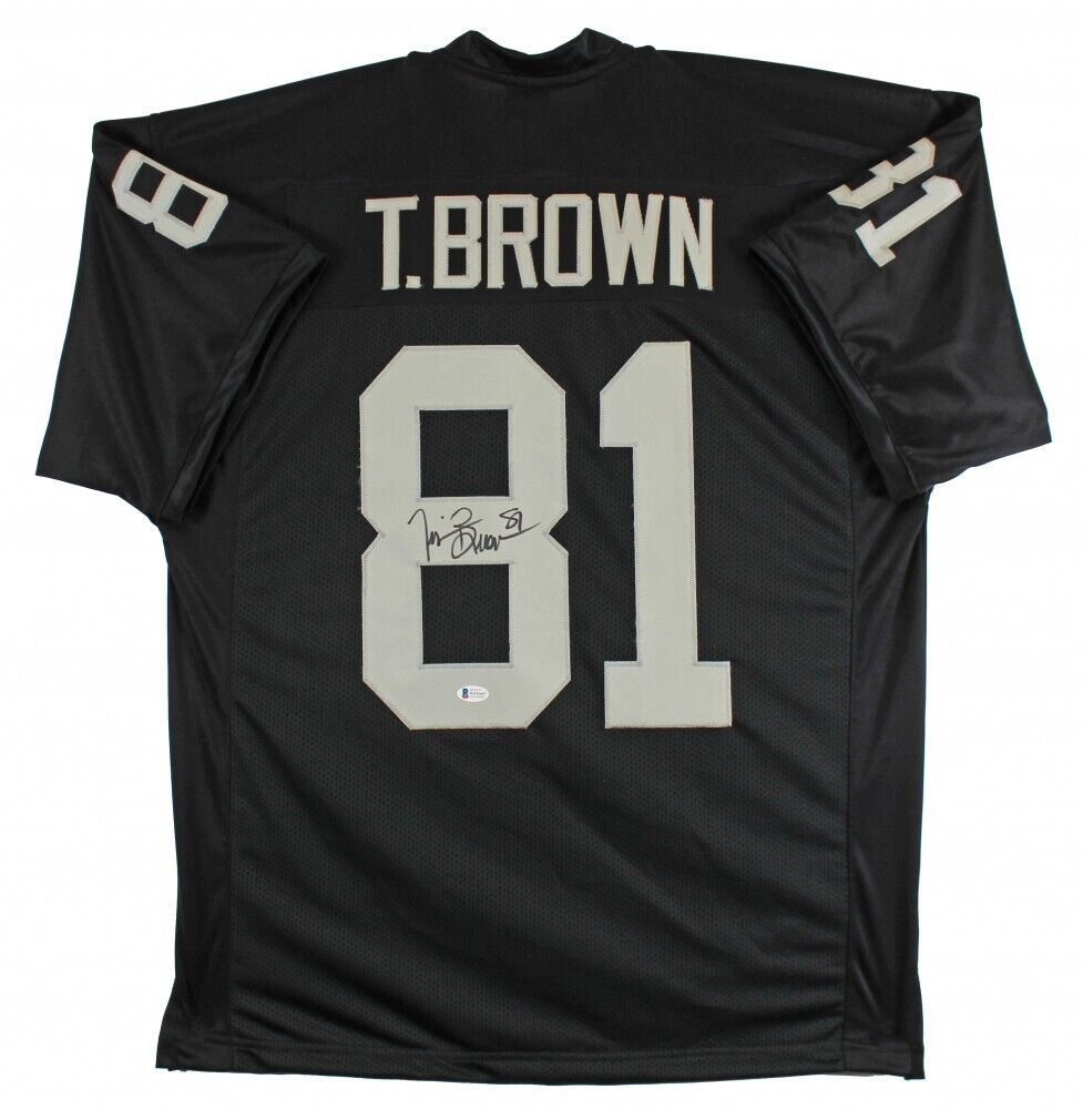 Tim Brown Signed Oakland Raiders Jersey (Beckett) Ex-Irish All Pro Wide Receiver
