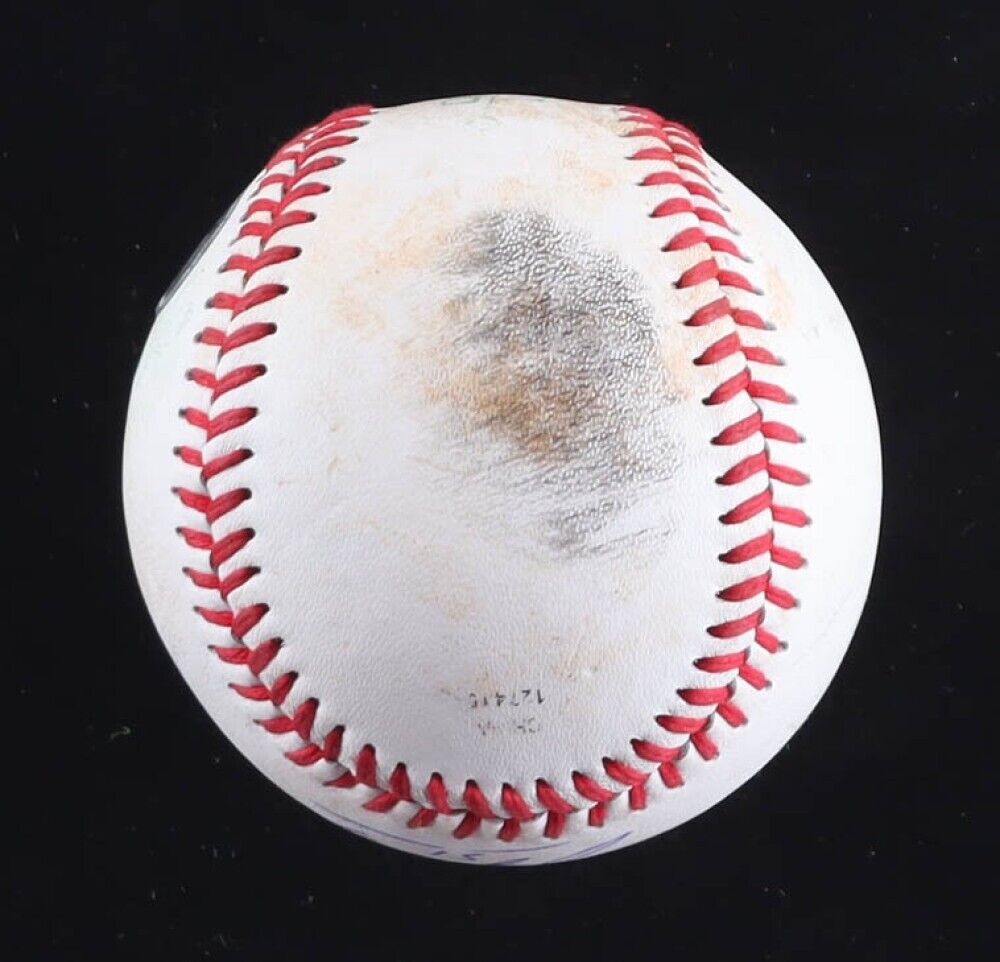 The baseball comes from the signer's personal collection and shows use-associated scuffing throughout.