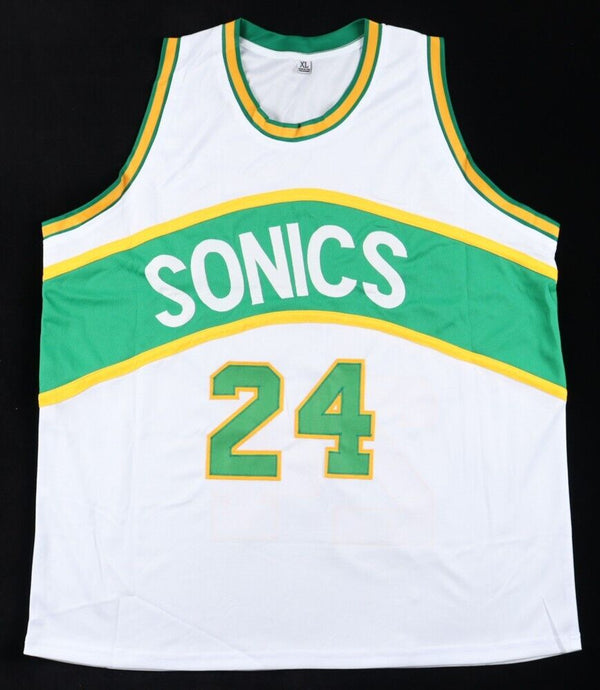 This autographed custom on-court style adult XL jersey has been personally hand-signed by Tom Chambers of the Seattle Supersonics. This autograph is certified by James Spence Authentication (JSA). It comes...