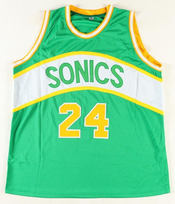 This autographed custom on-court style adult XL jersey has been personally hand-signed by Tom Chambers of the Seattle Supersonics. This autograph is certified by James Spence Authentication (JSA). It comes...