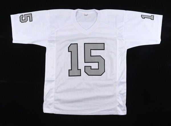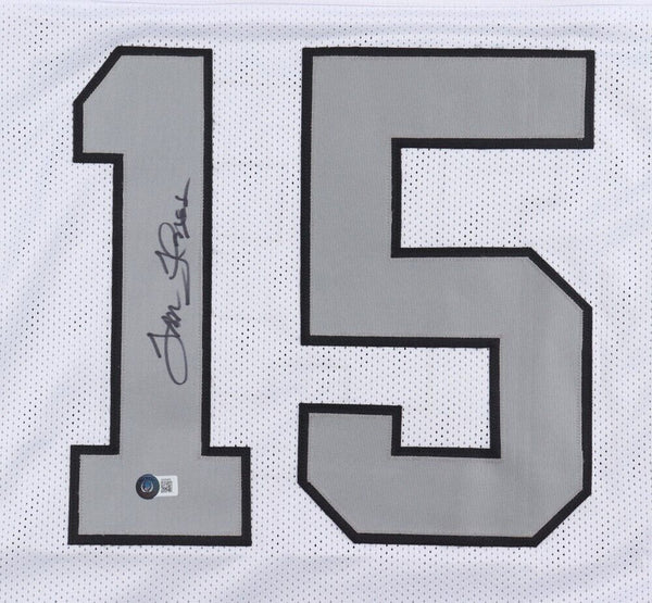 Custom on-field style jersey. Everything is sewn on, size XL. Has been hand-signed and inscribed by Tom Flores (HOF). The lot / autograph(s) includes an official Beckett Authentication Services serially...