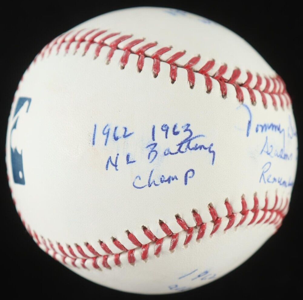 Rawlings Official Major League baseball. Hand-signed and inscribed by Tommy Davis (Los Angeles Dodgers, New York Mets, Chicago White Sox, Seattle Pilots, Houston Astros, Oakland A's, Chicago Cubs, Baltimore Orioles, California Angels, Kansas City Royals).