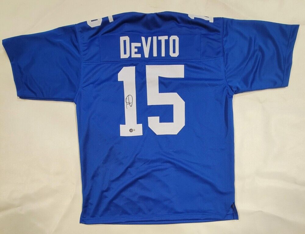 Custom on-field style jersey with everything sewn on, size XL. Hand-signed by Tommy DeVito.