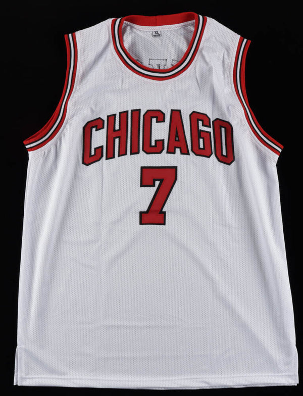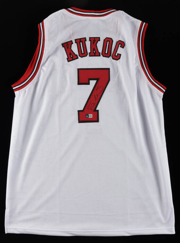Custom on-field style jersey. Everything is sewn on, size XL. Hand-signed by Toni Kukoc (HOF). The lot / autograph(s) includes an official Beckett Authentication Services serially-numbered hologram for authenticity purposes....