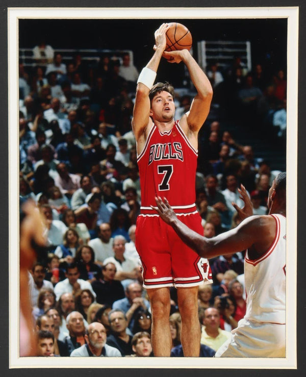 Custom frame measures 35" x 43" in size and features a custom on-court style jersey that has been hand-signed by Toni Kukoc. The autograph includes an official Beckett Authentication Services...