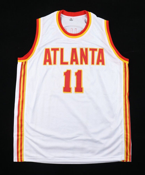 Custom on-court style jersey. Everything is sewn on, size adult XL. Hand-signed by Trae Young. Please note, there are red stains on the back of the jersey (see photos).The autograph...