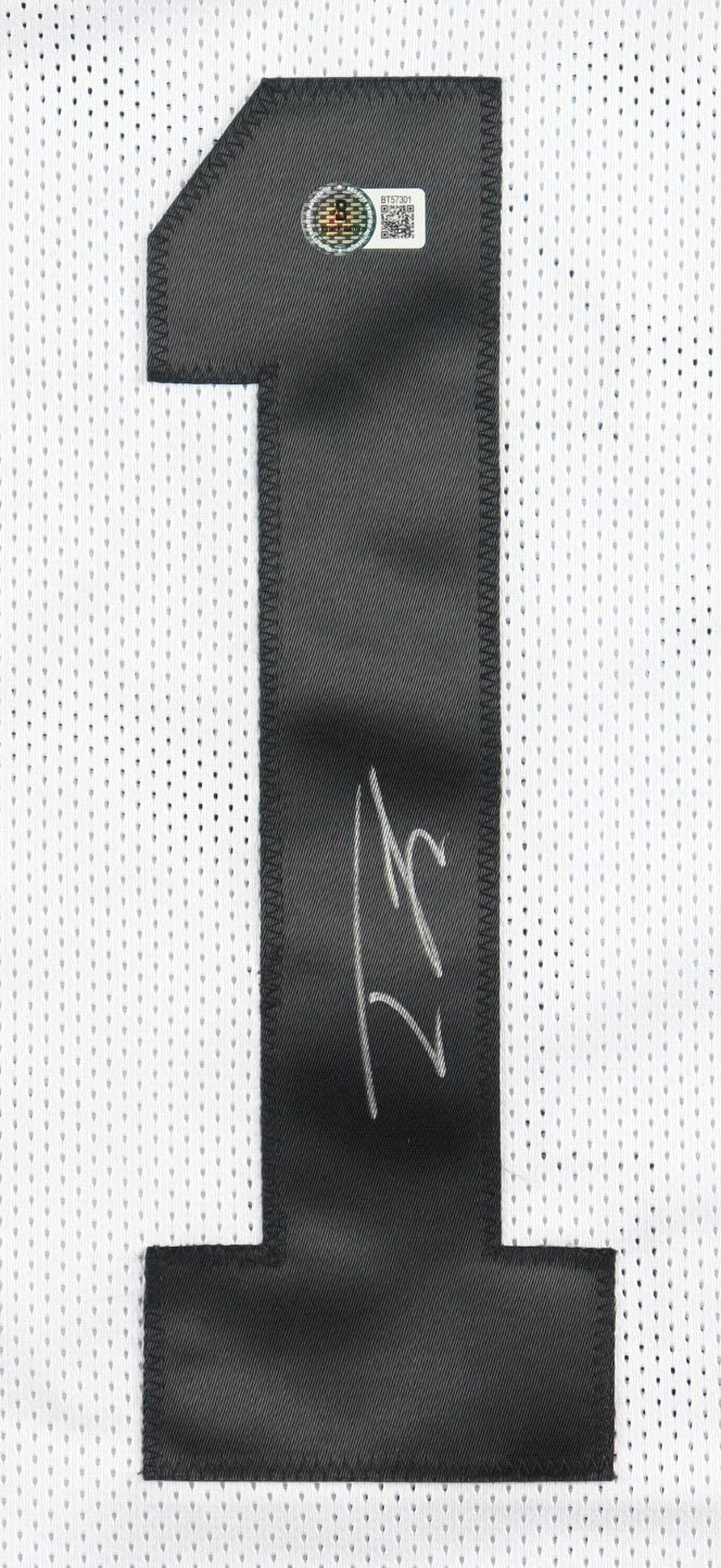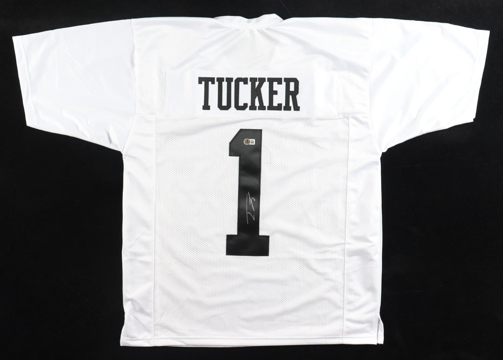 Custom on-field style jersey. Everything sewn on, size adult XL. Hand-signed by Tre Tucker.