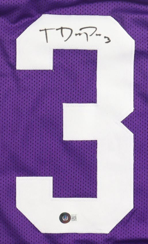 Custom on-field style jersey. Everything sewn on, size XL. Hand-signed by Tyrion Davis-Price (LSU Tigers). The autograph includes an official Beckett Authentication Services serially numbered Scannable hologram and QR Code...