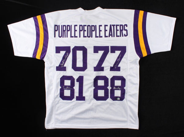 Vikings "Purple People Eaters" Jersey Signed by Page, Eller, Marshall, & Larsen