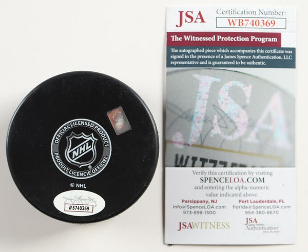 New York Rangers logo hockey puck. Hand-signed by Vincent Trocheck. The autograph includes an official James Spence Authentication serially numbered hologram and matching COA for authenticity purposes. The signing of...