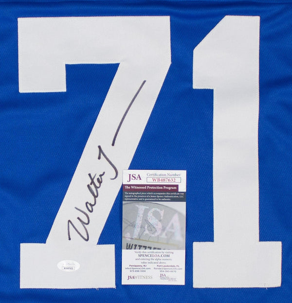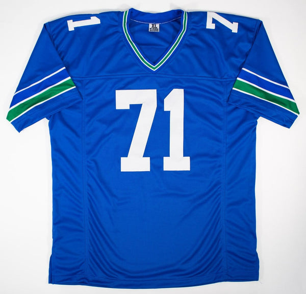 Custom on-field style jersey. Everything is sewn on, size XL. Hand-signed in black felt tip pen by Walter Jones (Seattle Seahawks, HOF). The autograph includes an official James Spence Authentication...