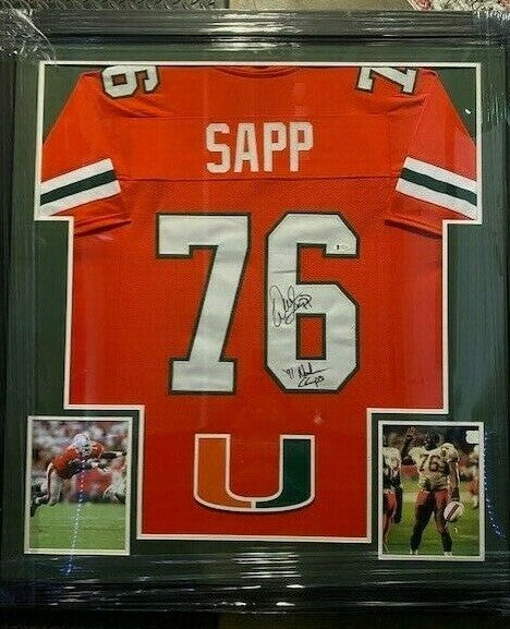 Warren Sapp Signed Miami Hurricanes 36"x39" Framed Jersey (Beckett COA) 91 Champ