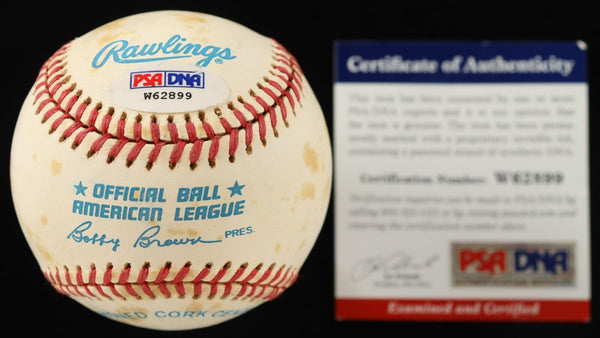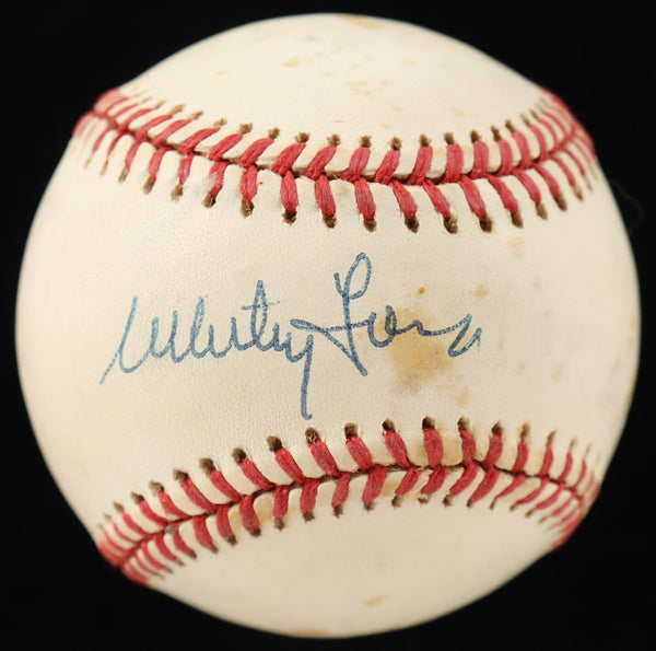 Rawlings Official American League baseball. Hand-signed by Whitey Ford (D. 2020, New York Yankees, HOF). Please note, the baseball is naturally toned. The autograph(s) includes an official PSA/DNA hologram and...