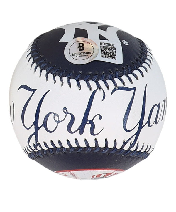 New York Yankees Logo baseball. Hand-signed by Whitey Ford (D. 2020, New York Yankees, HOF). The autograph includes an official Beckett Authentication Services serially numbered hologram and QR Code card...