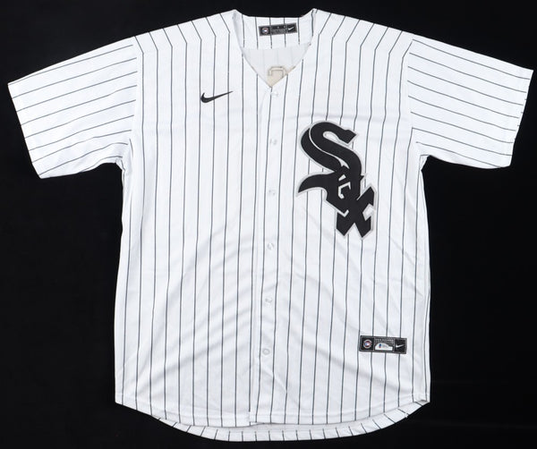 Custom on-field replica jersey. Everything sewn on, size XL. Hand-signed by Yoan Moncada of the Chicago White Sox. The autograph includes an official Beckett Authentication Services serially numbered hologram and QR...
