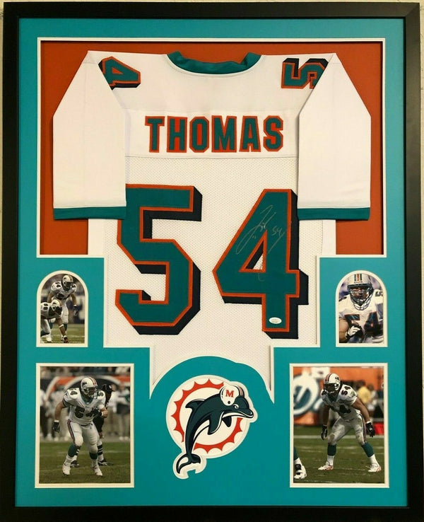 Zach Thomas Signed Miami Dolphins 35x43 Framed Jersey (JSA COA) 7xPro Bowl L.B.