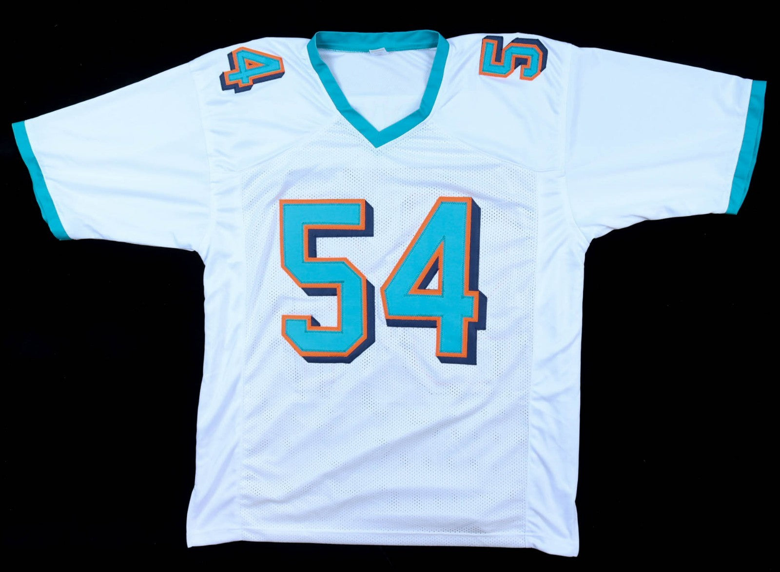 Custom on-field style jersey. Everything is sewn on, size XL. Hand-signed by Zach Thomas.